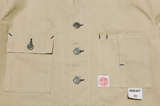 HEADLIGHT ヘッドライト ランダムヘリンボーンツイル ワークベスト ワークジャケット ノーカラー HD15909 日本製