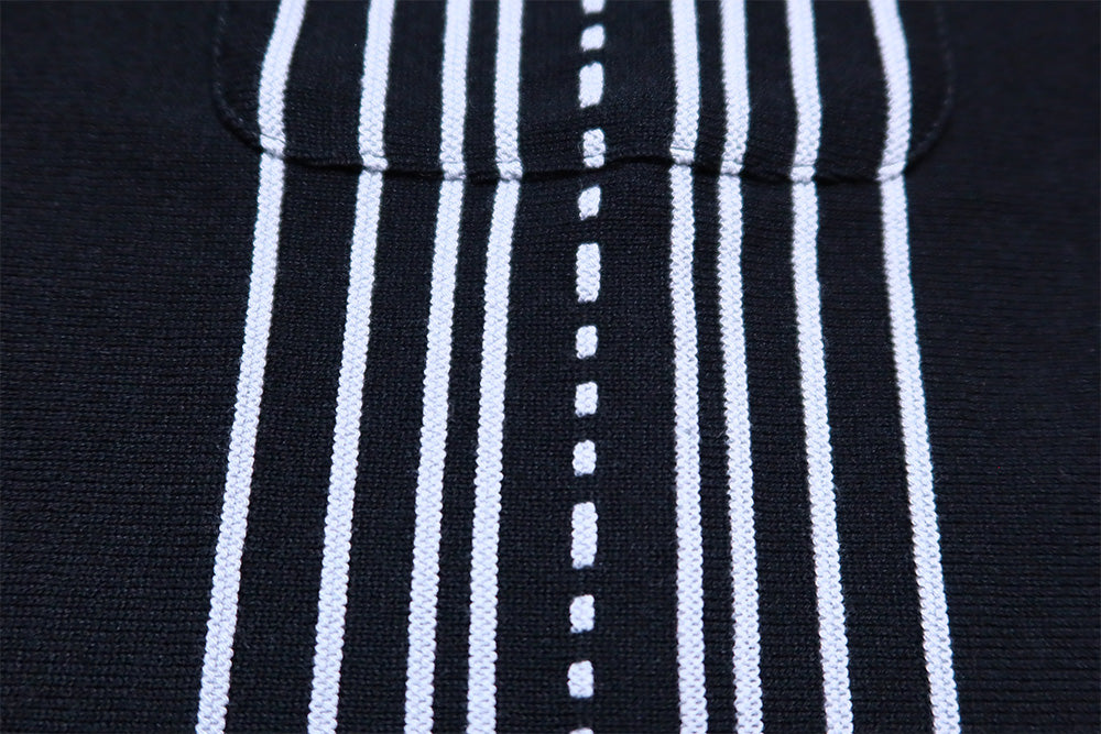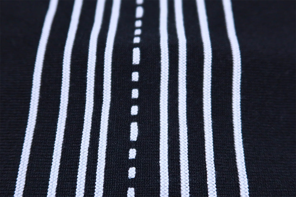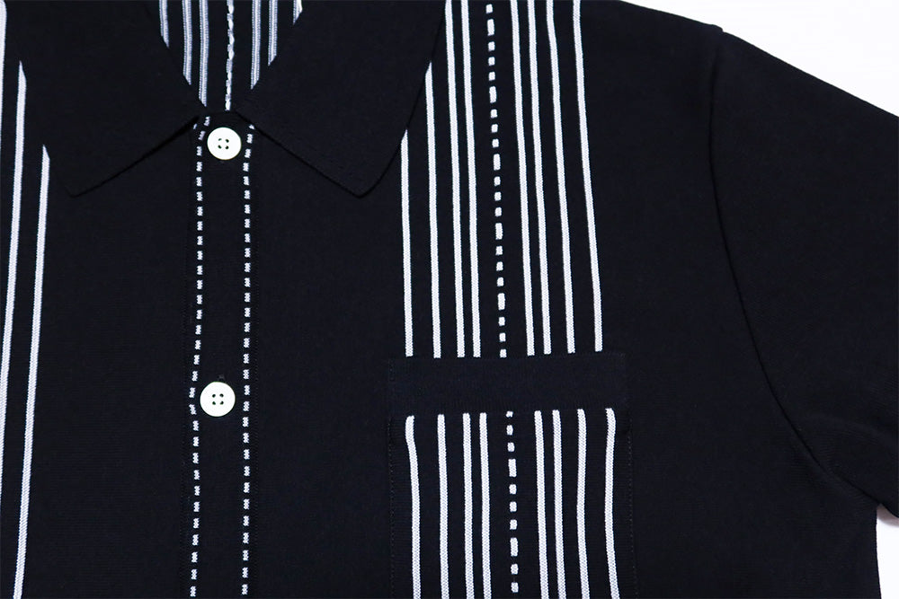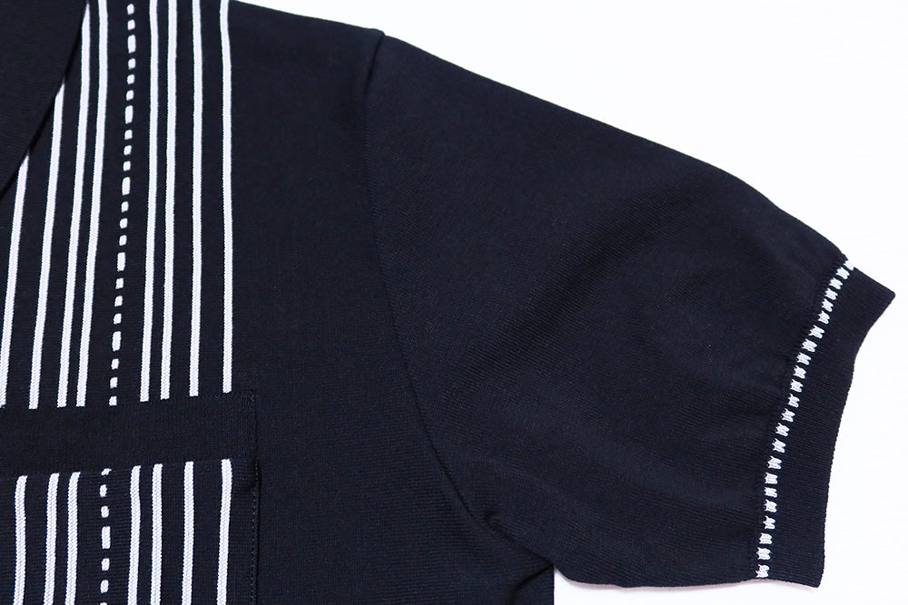 ステッチのようなドット柄が入っており、黒地のボディに大人な魅力のニットシャツとなっています。