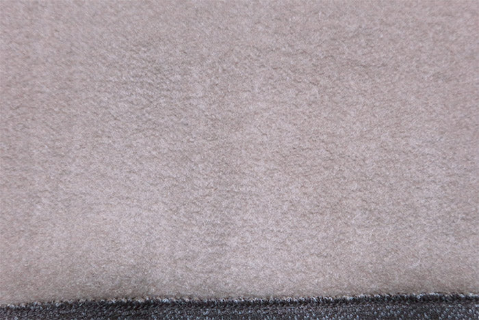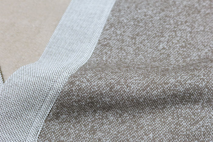 裏起毛のスウェット生地で、襟は鹿の子組織の裏毛を、袖にはリブ生地と3種類の生地を組み合わせヴィンテージらしさを表現。