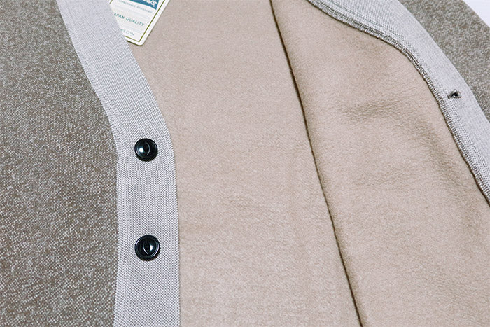 異なる色の糸撚り合せる通称"ごま塩"の、1950年代スウェットをベースにしたカーディガン。