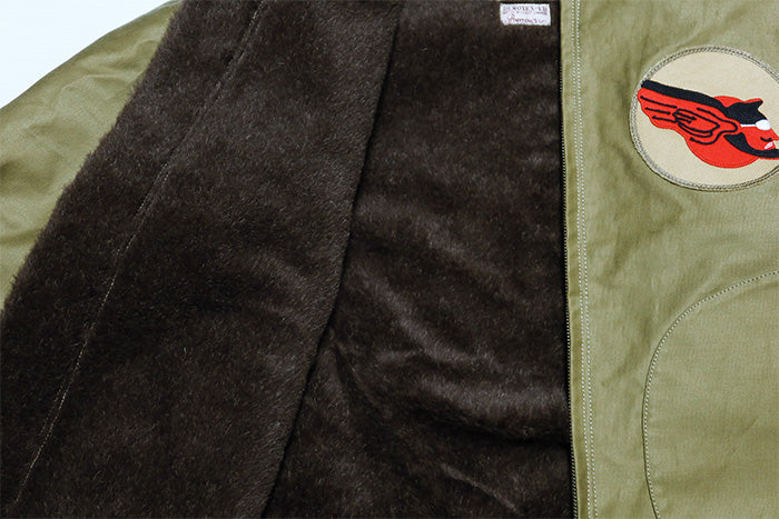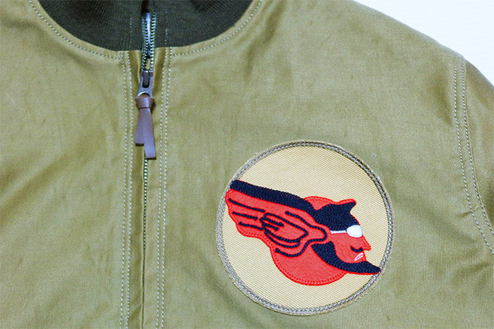 フロント下部には特徴的なDパッチポケット。左胸には中隊の所属を示すスコードロンパッチ、背面はステンシルプリントを施したデザインで、防寒性とデザイン性を併せ持ったアウターとなっています。