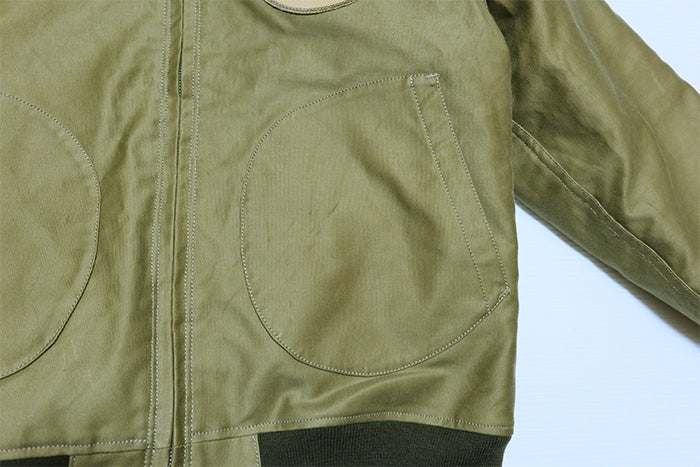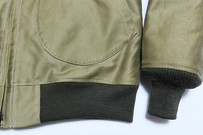 首元と袖口はウールリブ、フロントファスナー部分には比翼を、脇下には通気のためのハトメ等のディテールもしっかり備えています。