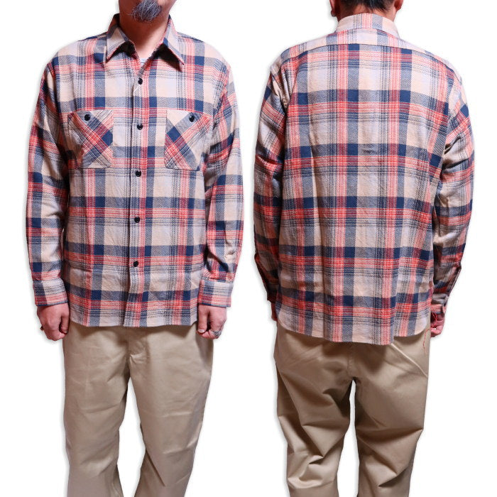 SUGAR CANE シュガーケーン ツイルチェックワークシャツ 日本製 ベージュ コットン SC29562