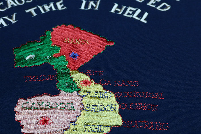 本作は、胸に虎と福、背中はベトナムマップと戦争に対するやるせなさを綴ったメッセージの刺繍です。